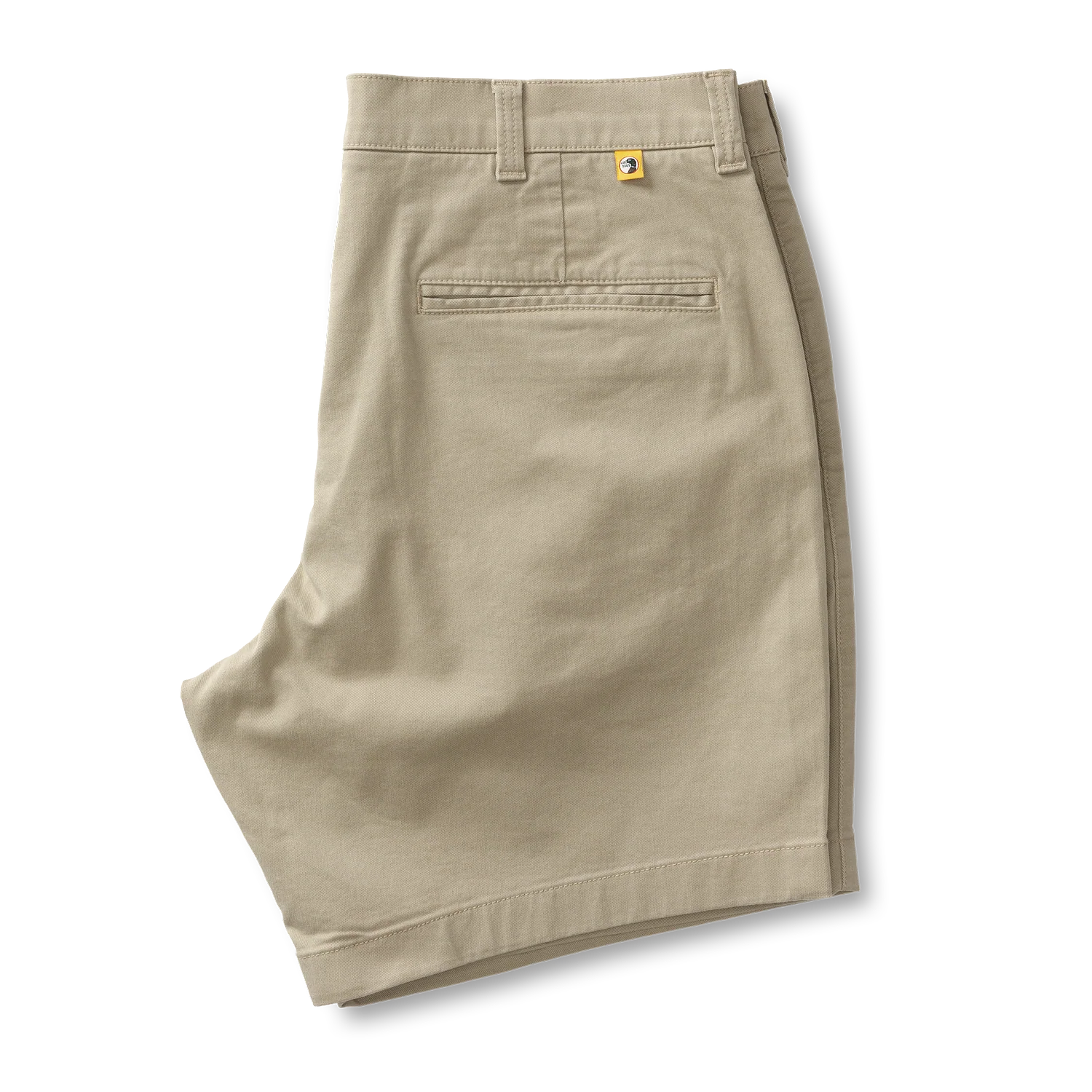 The Duck Head Gold School Short shares every detail with our full-length chino. Same signature button, same drill cloth interior, and same 7.5 oz. cotton twill with a trace of functional stretch. The 7” inseam sits above the knee, making them ideal for summer days in the low country.