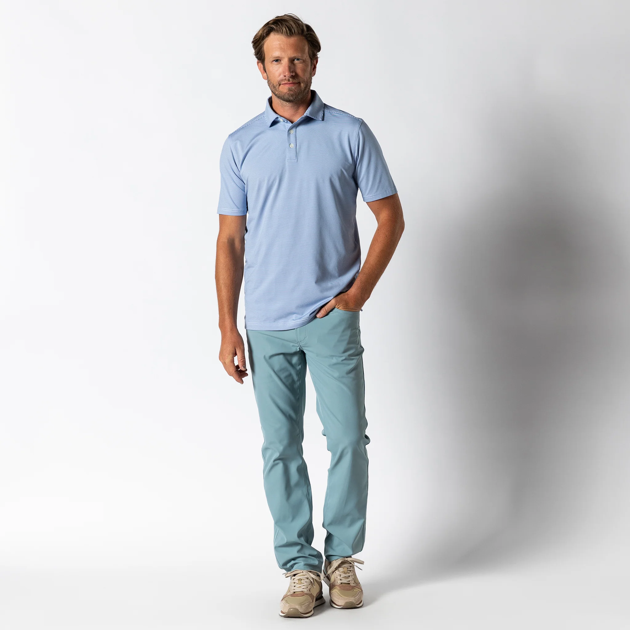 Elevate your game with the Long Drive Performance Polo. Crafted from vibrant striped and printed jersey, it combines style with performance, featuring moisture-wicking, odor resistance, and quick-dry technology to keep you cool and comfortable. Easy to care for, it’s perfect for both the course and the clubhouse. Pair it with our Long Drive Five Pocket Pant for a sharp, complete look.