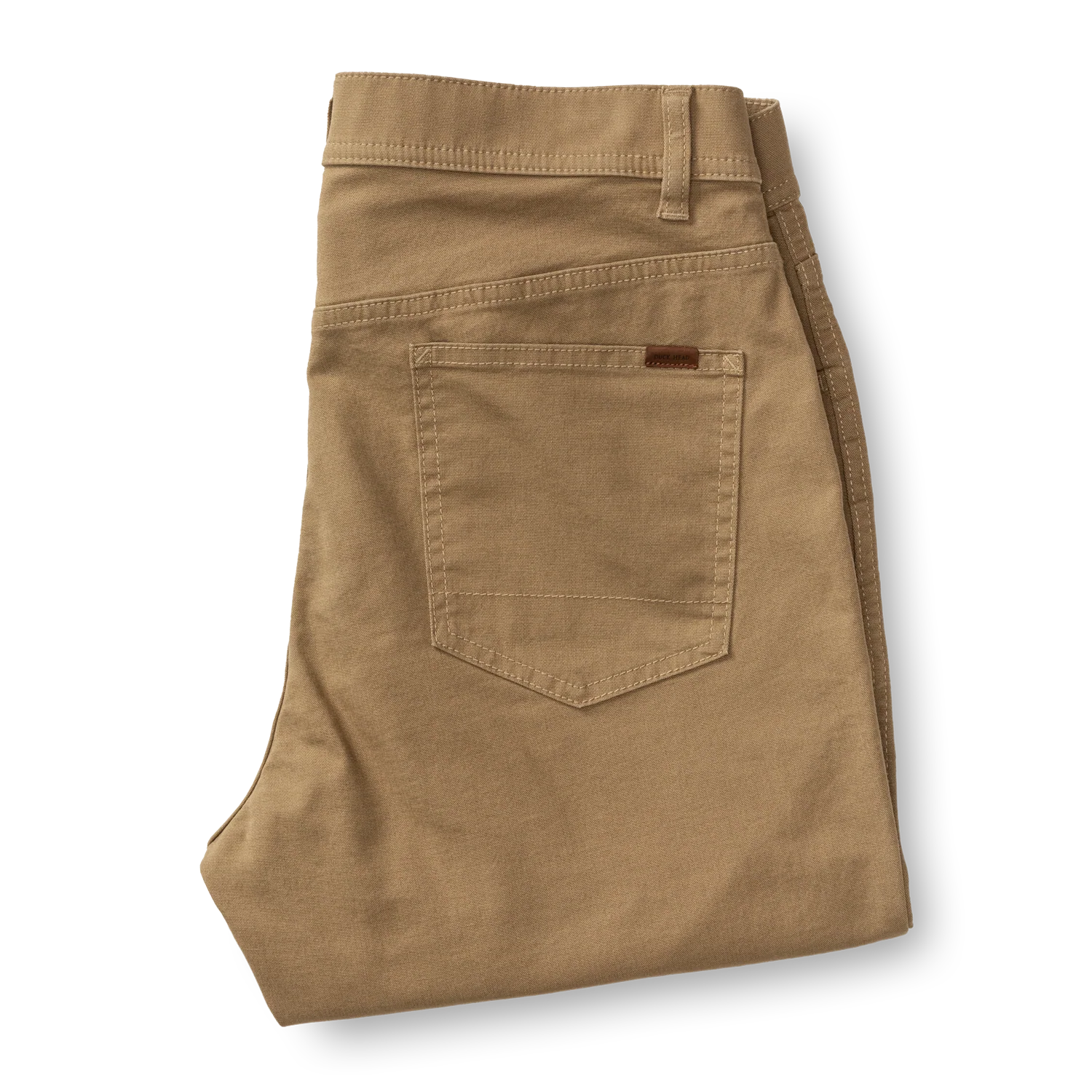The Pinpoint Canvas Five-Pocket is the perfect midweight pant to carry you from one season to the next. The refined canvas fabric is soft to the touch with a hint of stretch for added mobility. These pants are durable enough to withstand your busy lifestyle, whether you’re in the city or out in the country. They also feature a nubuck leather tab for a touch of sophistication, and are garment washed for a lived-in look. A lighter weight than our Field Canvas Five-Pocket, the Pinpoint provides a great option for the warmer months. The clean classic fit mirrors the Gold School Chino and wears perfectly with sneakers or loafers for a versatile look that can take you from the office to the outdoors.Â
