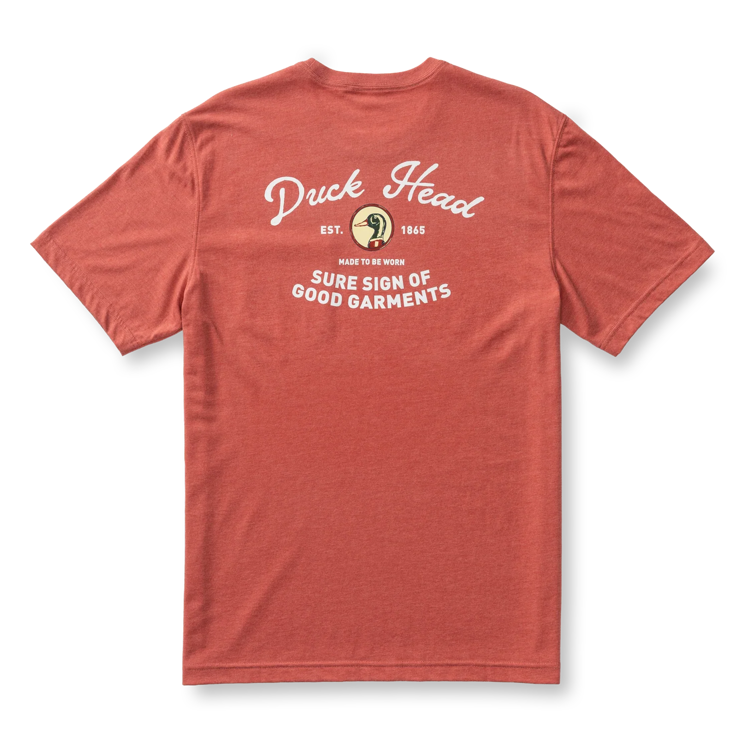 A classic pocket tee finished with a vintage-inspired back graphic featuring Duck Head’s “Sure Sign of Good Garments” slogan.